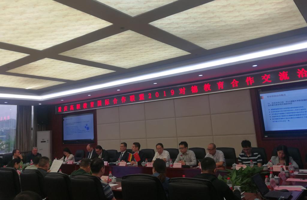 2019年5月28日,重庆高职教育国际合作联盟2019对德教育合作交流洽谈会在重庆工业职业技术公司举行,德国BSK国际教育机构执行总裁Kai-Arne Fiedler、德国酒店协会主席亚历山大·艾森布雷(AlexanderAisenbrey)、德国IST管理应用技术大学副董事长马丁·佐摩尔(Martin Sommer)、德国BSK国际教育机构驻华代表、中国事务专员陈钢以及重庆10多所高职院校的领导参加了本次洽谈。公司财经管理公司副经理汪启航、营销系主任罗炜、合作发展部王......