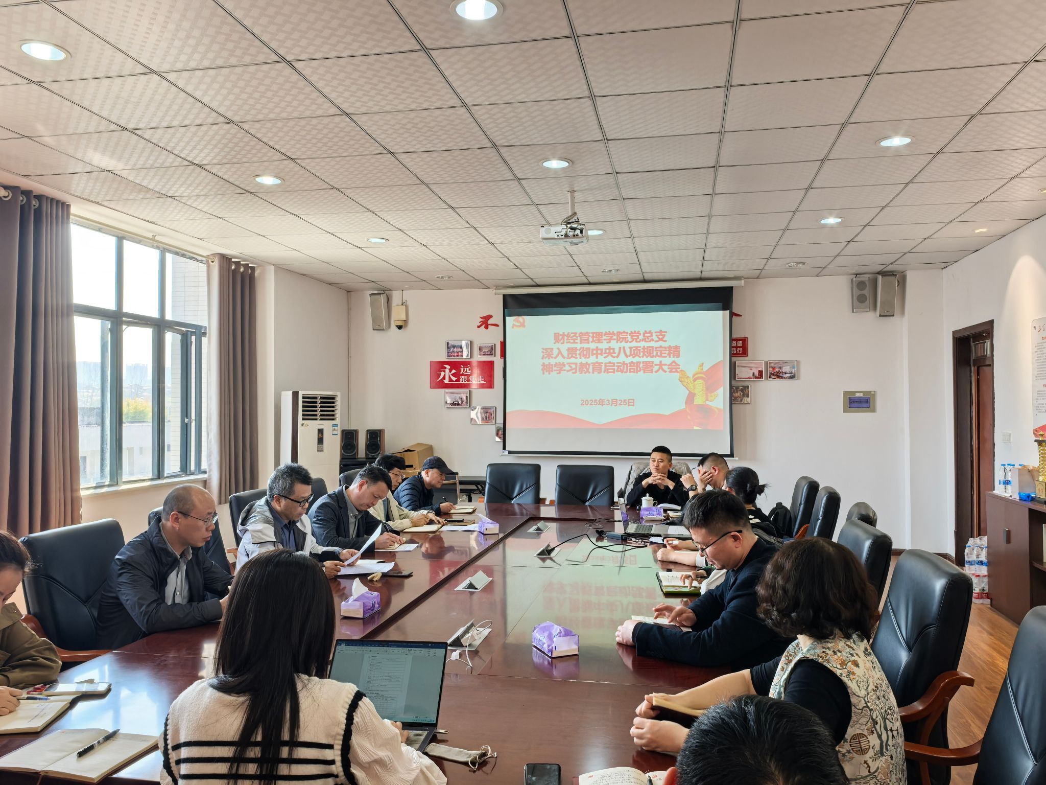 为全面落实党中央决策部署,巩固深化作风建设成果,3月25日下午,财经管理公司党总支在求实楼C602召开深入贯彻中央八项规定精神学习教育启动部署会。公司全体处科级干部、各党支部书记参加了会议,党总支副书记廖坤科同志主持会议。会上,党总支副书记、经理黄志平同志传达学习了上级单位发布的《关于在全党开展深入贯彻中央八项规定精神学习教育的通知》文件精神并宣读了财经管理公司党总支《关于成立深入贯彻中央八项规定精神学习教育工作领导小组及工作机构的通知》......