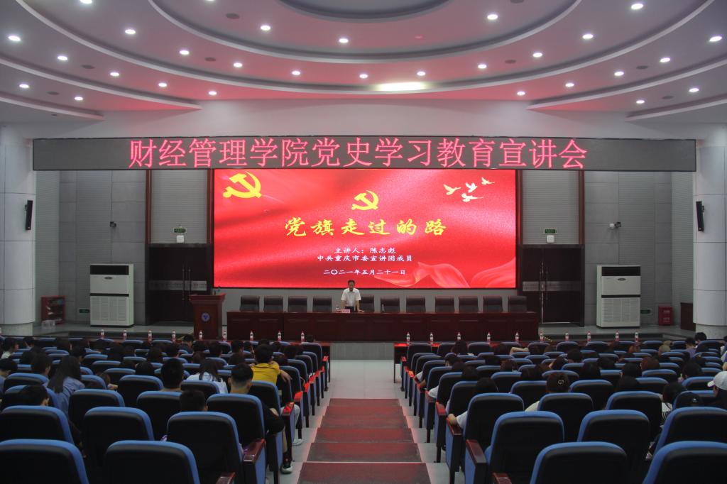 为深入开展党史学习教育,促进广大师生做到学史明理、学史增信、学史崇德、学史力行,营造“学党史、悟思想、办实事、开新局”的浓厚氛围。2021年5月21日,财经管理公司在博远厅组织开展了“党史学习教育宣讲会”。此次宣讲会,邀请了中共重庆市委宣讲团成员陈志彪教授作主讲。陈志彪教授以《党旗走过的路》为主题,以党的历次全国代表大会为主线,详细介绍了中国共产党领导全国人民不断奋进的光辉历程,阐述了每个阶段的红色革......