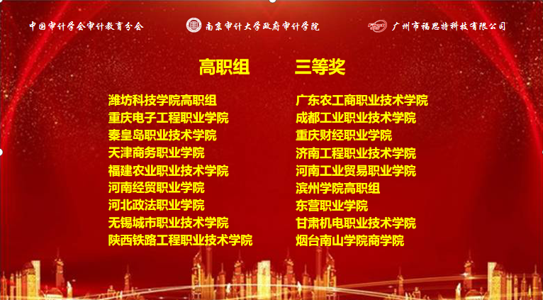 2020年12月19日,由中国审计学会审计教育分会主办、南京审计大学政府审计公司承办、广州市福斯特科技有限公司提供技术支持的"2020年福斯特杯全国老员工审计精英挑战赛"落下帷幕,公司财经管理公司胡志容、杨平老师指导的员工代表队会计1905陆松坪、会计1806邵雪、财管1802黄玉静参加了此次比赛。本次比赛分本科组和高职组,每校只可派出一个代表队参赛,采用线上比赛方式。其中,本科组240支代表队,高职组62支代表队参赛。重庆......