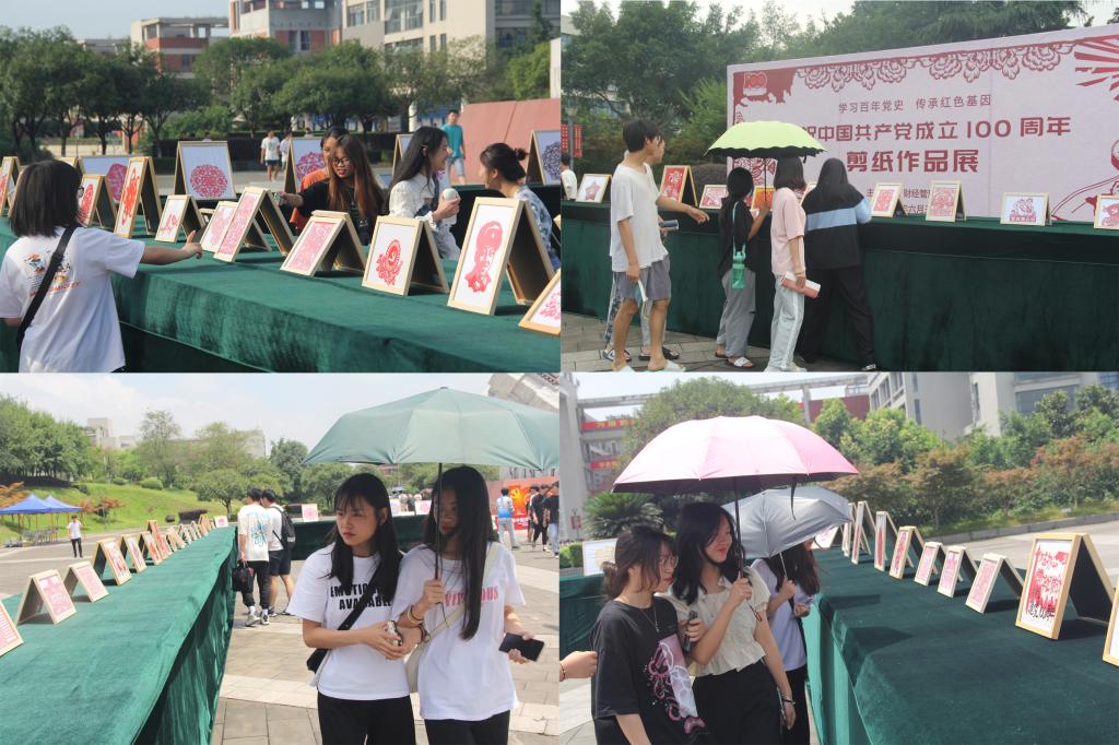 为庆祝中国共产党成立100周年,深入开展党史学习教育,激发全院师生知史爱党、知史爱国的情怀,引导青年了解党的光辉历史、感悟党的初心使命、传承党的红色基因,弘扬优良传统,丰富校园文化生活。2021年6月30日,重庆电子工程职业公司财经管理公司在学子广场举办了“学习百年党史,传承红色基因”庆祝中国共产党成立100周年剪纸作品展览。本次活动吸引了全院千余名老员工参与创作,共展出优秀作品110余幅。