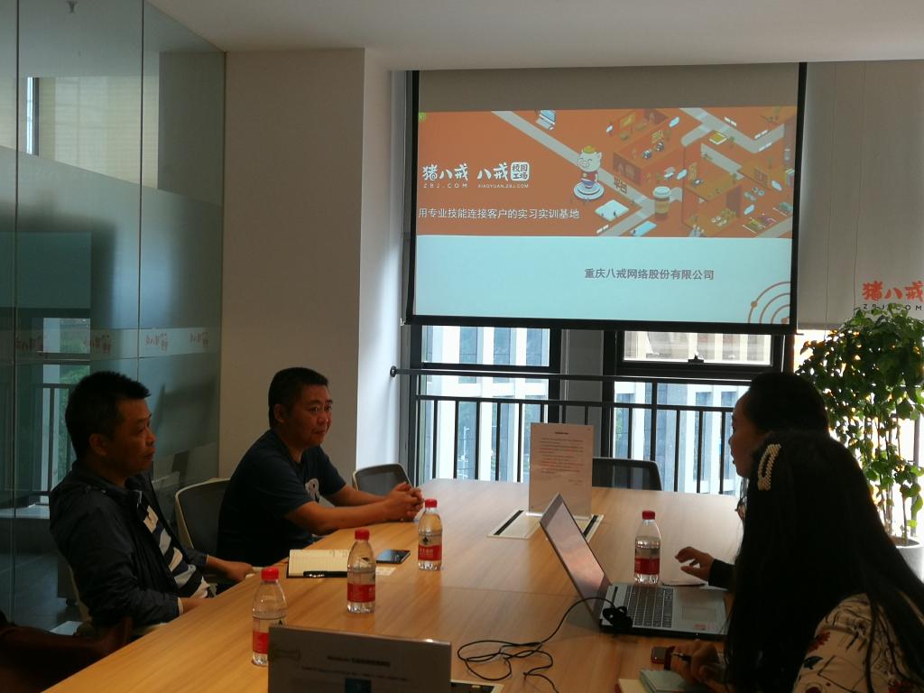 2019年5月22日,公司财经管理公司经理黄志平教授、电商系主任董征宇教授、合作发展部主任王希琼教授一行赴重庆猪八戒网络有限公司洽谈校企合作。