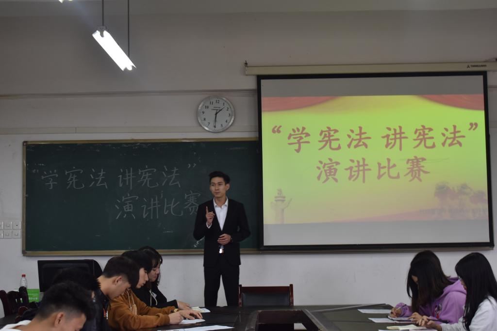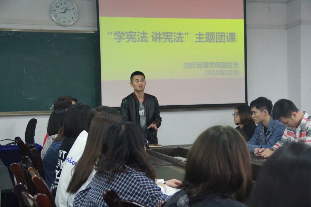 10月12日中午,公司团总支书记苏逸老师在北校区10-412教室对财经管理公司第一届团总支员工会全部干部同学和员工党员进行了一次团课教育。以青年员工如何更好地“学宪法、讲宪法”为主题,结合目前热点的法制案例,与公司干部和党员同学一道,进行了一次深入的学习。10月14日晚,在公司班级例会中,辅导员、班主任老师向公司所有班级发出了“学宪法、讲宪法”的倡议和开展主题团组织生活要求。10月17日中午,在10-412教室公司举办了“学宪法,讲宪法”的主题演讲比赛。此次比赛共有35名同学上台演讲,同学们从1954产生的第一部宪法,讲到今年2018年的第五次宪法修订,从什么是宪法,怎么学宪法,讲到青年员工们如何讲好宪法,维护好宪法。活动现场营造出了崇尚宪法、遵守宪法、维护宪法权威的良好氛围。同时,公司也正在开展“学宪法、讲宪法”的主题征文比赛。相信,通过系列的讲座、学习、主题团组织生活、征文演讲等活动,此次宪法学习教育活动将在青年员工中引向深入。