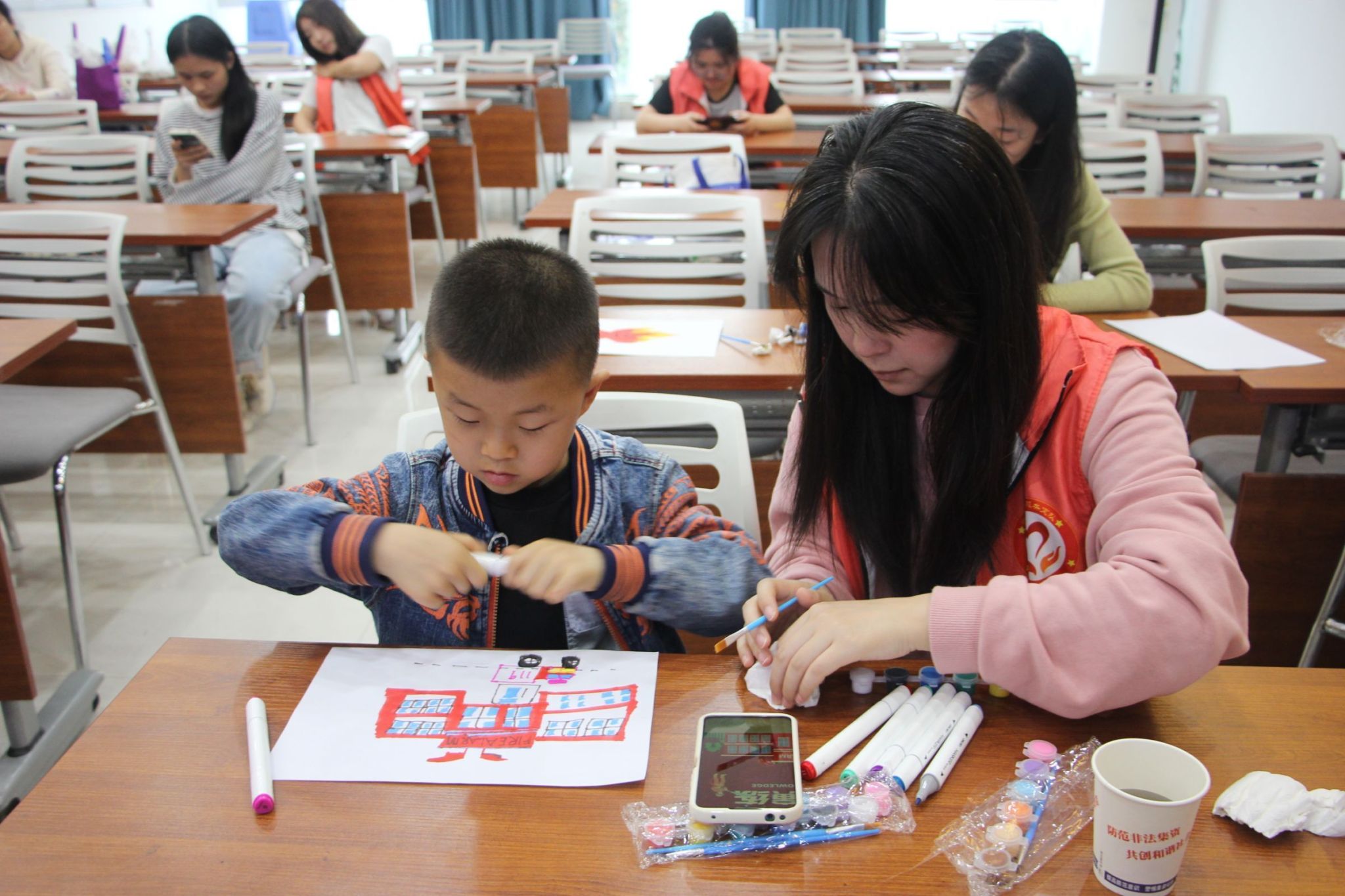 活动中,同学们通过儿歌、图片和视频的形式,带领小朋友们认识消防器材、逃生标志,了解灭火器的正确使用方法,学习火灾逃生的动作要领;同时,还告诉大家火灾时要用湿毛巾捂住口鼻,低伏前行,及时逃离到安全地带;在问答环节,小朋友们纷纷举手抢答,学习了发生火灾后第一时间拨打电话“119”,报警时能讲清楚详细地址、起火部位、火势大小等自救常识。最后,老员工志愿者们还与小朋友们一起制作了消防安全宣传画,让消防逃生知识和自救技能更加深入社区小朋友们的内心。