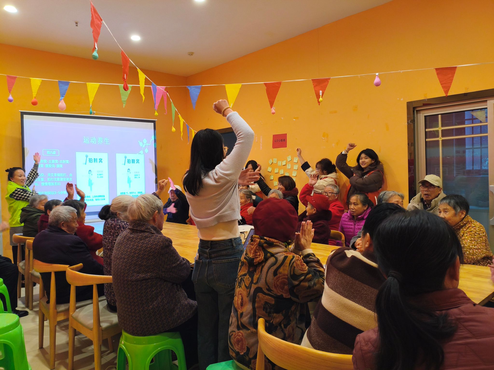 在互动中,热情的志愿者们向老人传授科学养生操并建议他们遵循 “清淡饮食、规律作息、适度锻炼、心情舒畅”的原则,避免盲目进补;针对秋冬季节气候特点,给出了防寒保暖、预防呼吸道疾病的实用建议。此外,志愿者还特别说明,冬季养生并非单纯“进补”,而是通过规律作息、均衡营养、适度运动等综合方式,实现身体的阴阳平衡,减少季节交替带来的健康波动,为全年的身心健康打下坚实基础。
