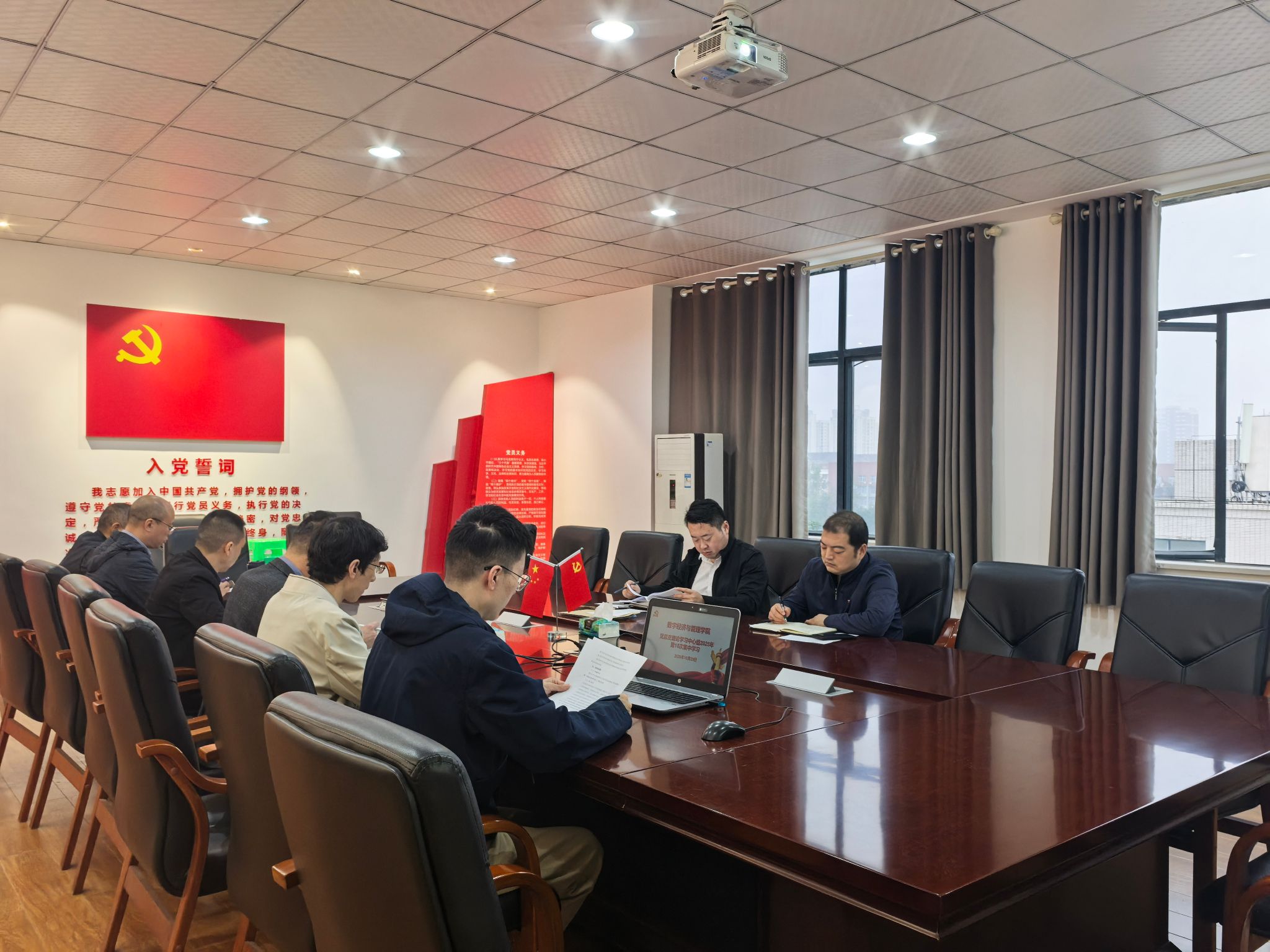 2025年10月29日下午,公司党总支理论学习中心组在北校区求实楼C602会议室召开2025年第10次集中学习会,专题学习《习近平谈治国理政》第五卷第五章“一体推进教育科技人才事业发展”。公司党总支理论学习中心组成员参加学习。学习会由公司党总支书记蒋斌主持。公司党委常委、党委教师工作部部长、人力资源处处长、巡听旁听工作组第四组组长周鑫及工作组成员列席旁听。