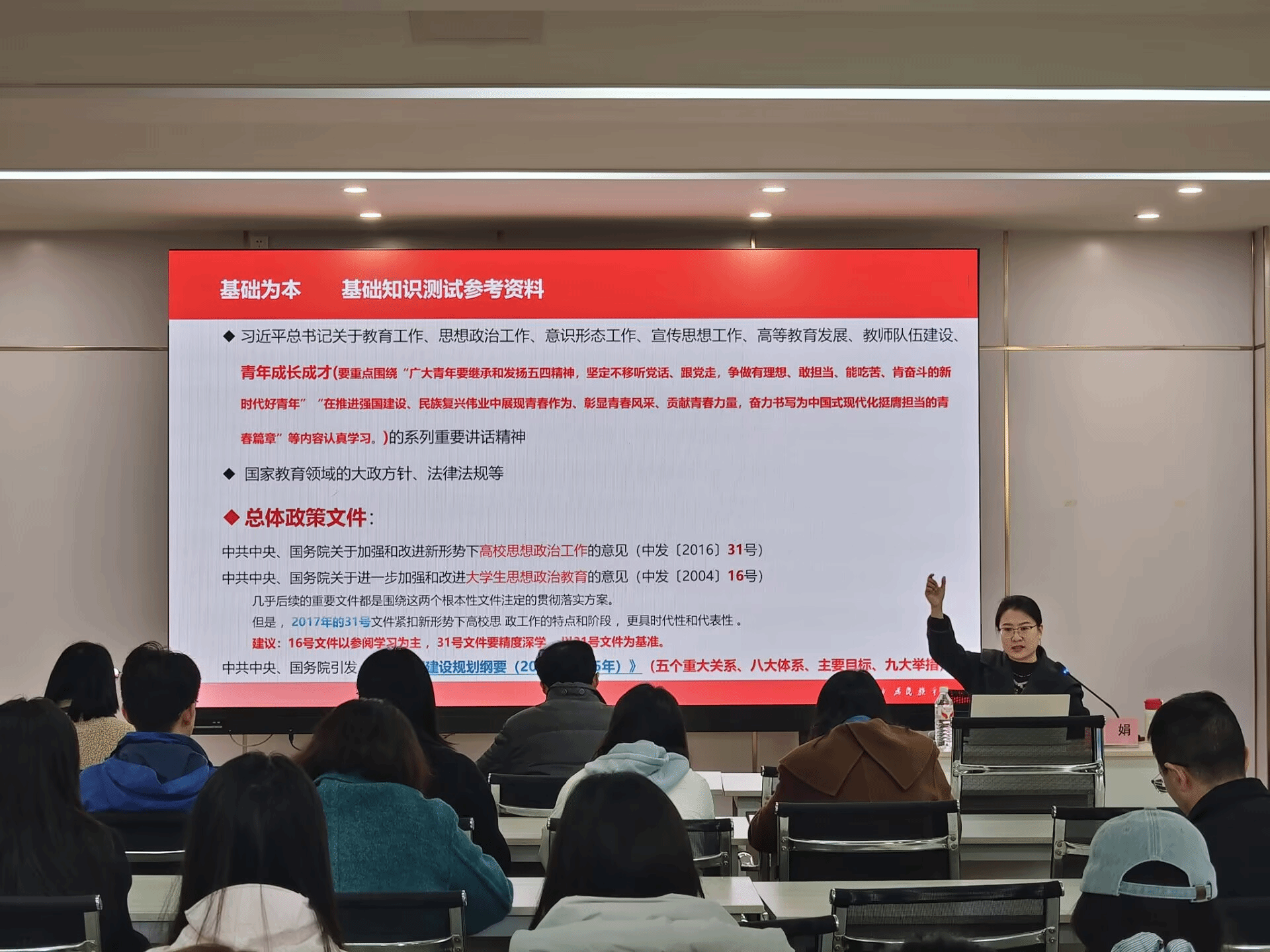 结合《教育强国建设规划纲要(2024—2035年)》等政策,王娟老师为辅导员梳理理论学习脉络,强调习近平总书记关于青年成长的重要论述是根本遵循,中发〔2016〕31号等文件需重点精读。她结合大赛真题分享学习技巧,建议辅导员总结员工心理规律,强化理论应用。