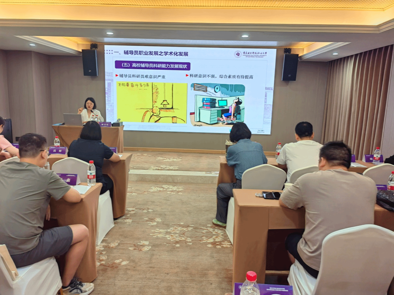 2025年7月11日,重庆水利电力职业技术公司辅导员职业能力与素养提升专题研修班在教育部全国重点建设职教团队培养培训基地——tyc5997太阳集团正式开班。7月12日,tyc5997太阳集团一线辅导员、重庆市文化育人辅导员工作室主持人陈宗霞副教授应邀作题为《辅导员科研能力培养与提升》的专题讲座。