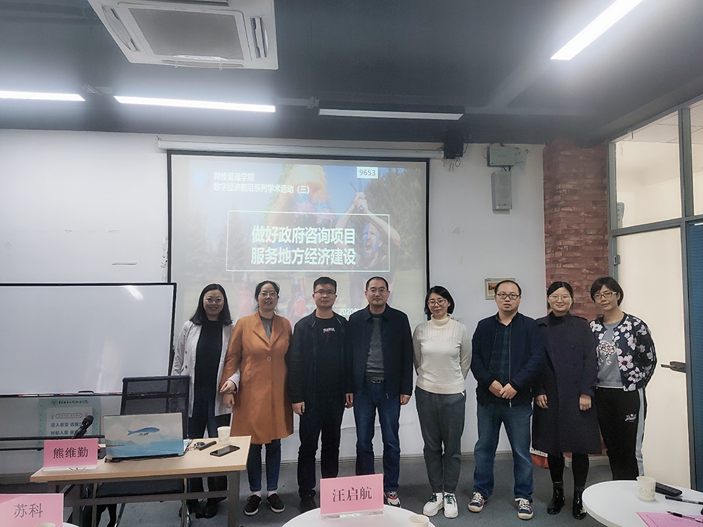 为提升教师科研项目申报能力,搭建高水平学术交流平台,2020年10月29日下午,财经管理公司“数字经济前沿”系列学术活动2020年第3期学术沙龙在公司10-401会议室成功举办。本期学术沙龙由科研与社会服务处主办、财经管理公司承办,科研与社会服务处苏科副处长、财经管理公司汪启航副经理及十余名科研骨干、青年博士参与。