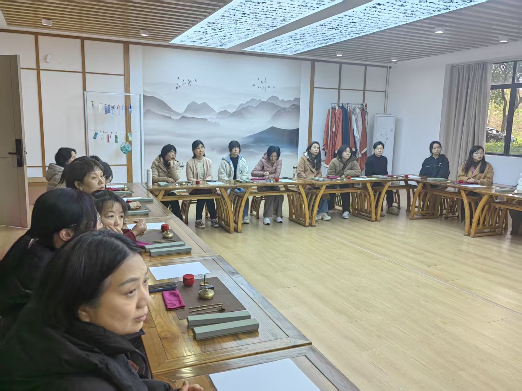 王蝶老师细致地介绍了香炉的种类特色以及制作工艺。她拿起一件件制作工具,现场演示如何巧妙地运用它们,从陶土的选择与处理,到塑形时的力度把控,再到装饰环节的创意构思,每一个步骤都讲解得深入浅出。女职工们不时提出问题,王蝶老师都耐心解答,现场互动氛围热烈。