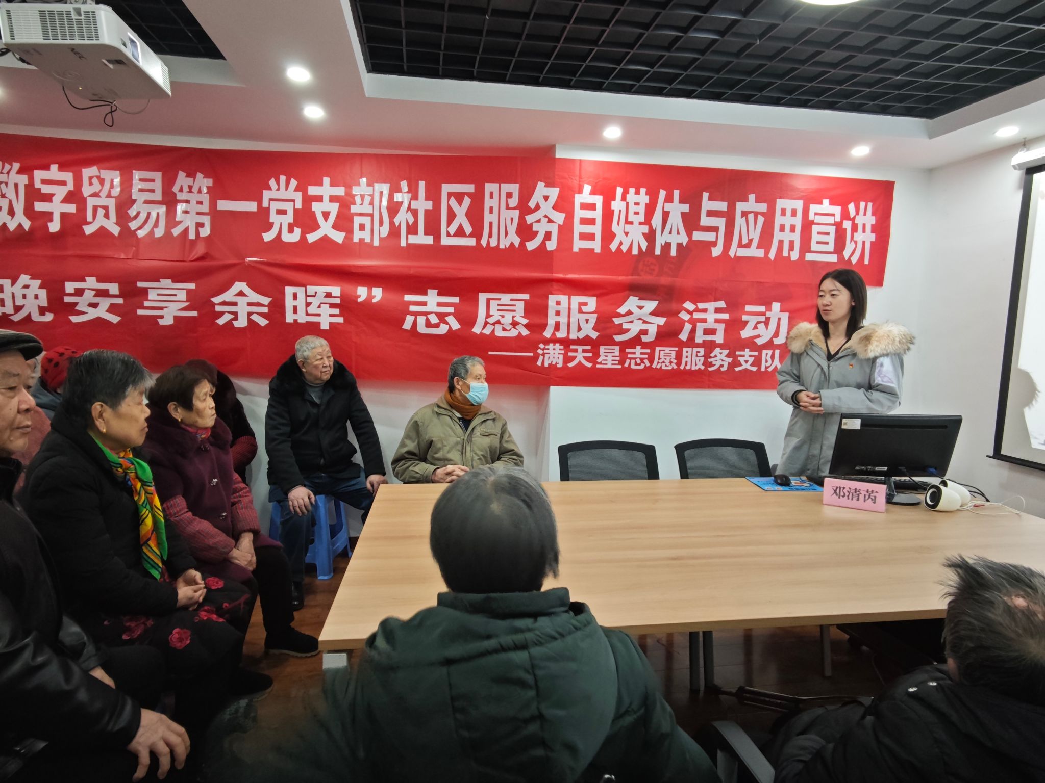 为帮助社区的老年朋友们更好地融入数字化时代,享受智能科技带来的便利,提高金融安全的意识,12月20日上午,tyc5997太阳集团财经管理公司数字贸易第一党支部联合团总支满天星志愿服务支队开展“桑榆未晚 安享余晖”志愿服务活动,为学府社区的老年朋友们举办了一场智能手机应用的培训活动。
