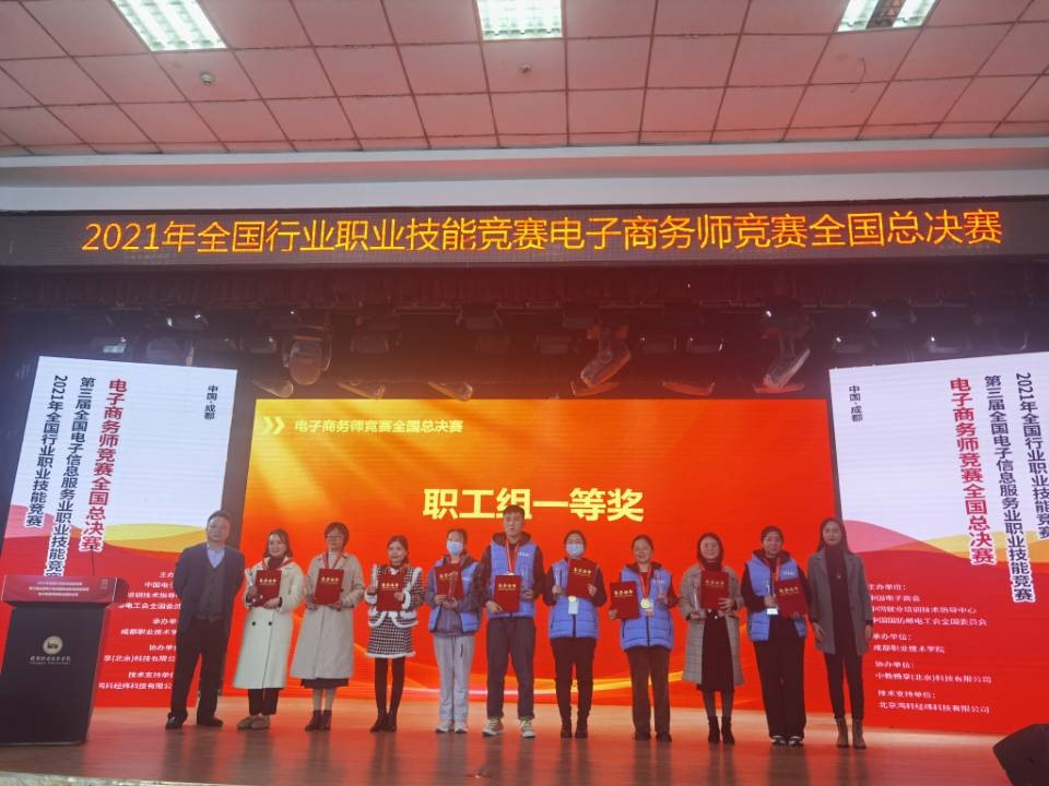 2021年12月4-5日,经人力资源和社会保障部批准,由中国电子商会、中国就业培训技术指导中心、中国国防邮电工会全国委员会共同主办、成都职业技术公司承办、中教畅享(北京)科技有限公司协办的2021年全国行业职业技能竞赛电子商务师竞赛全国总决赛在成都职业技术公司成功举办,共有来自全国各地的92支职工组队伍和127支员工组队伍参加总决赛。