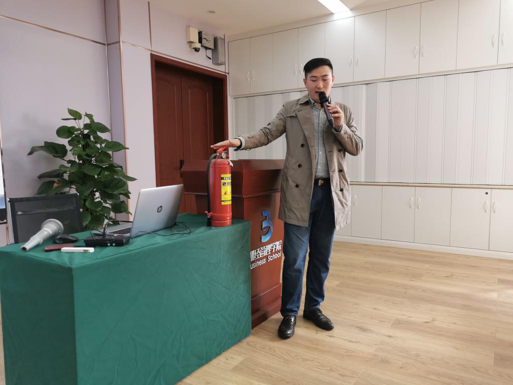 为进一步加强财经管理公司全体师生的消防安全意识,全力普及消防安全知识,推进公司消防安全宣传工作的开展,11月6日,财经管理公司邀请公司安全管理处消防干事熊浩然老师在10栋412开展消防安全培训讲座。公司辅导员、行政人员、各专业群负责安全管理的老师以及员工代表参加培训。