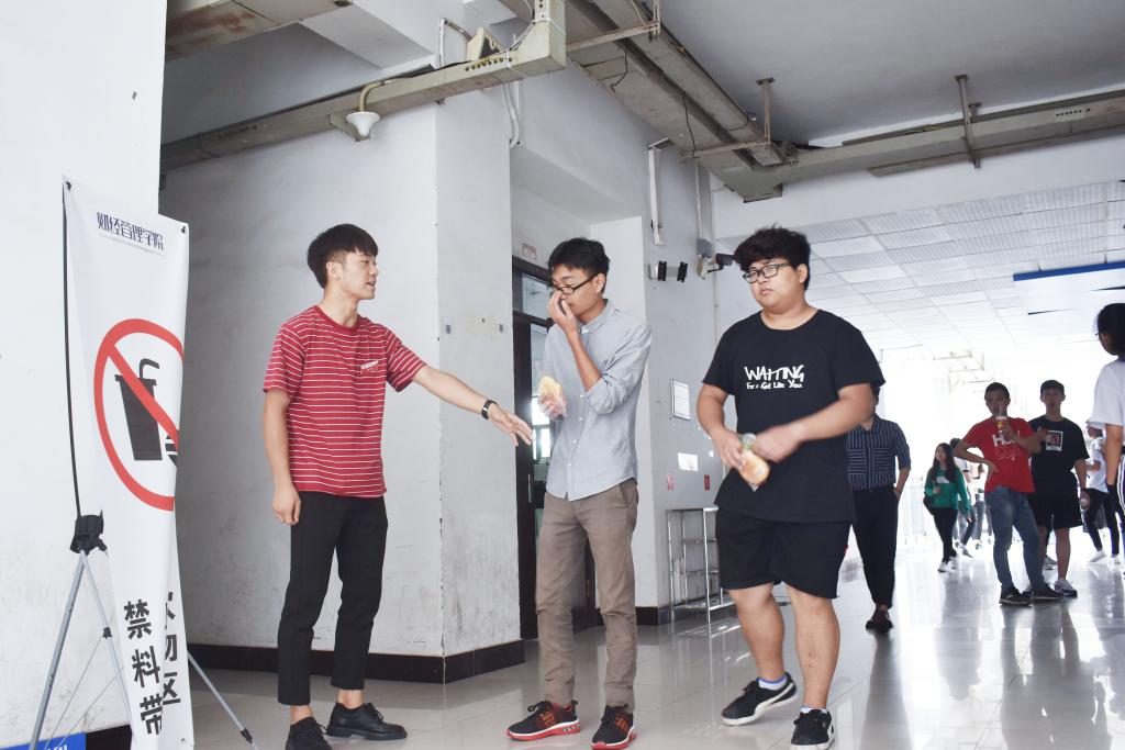 为积极响应创建文明校园活动,财经管理公司于新学期开学伊始,组织员工志愿者在每天早上八点十分、下午一点四十分在北校区九栋、十栋教学楼值班,对带食品和饮料进教学区域的同学进行宣传和劝导。 该项活动目的在于为广大师生营造一个良好的课堂学习环境,引导同学们养成良好的学习和生活习惯,实现食品和饮料垃圾统一放入垃圾筒。活动刚开始的时候,有些同学对此不太理解和支持,但通过一周多时间志愿者们耐心的解......